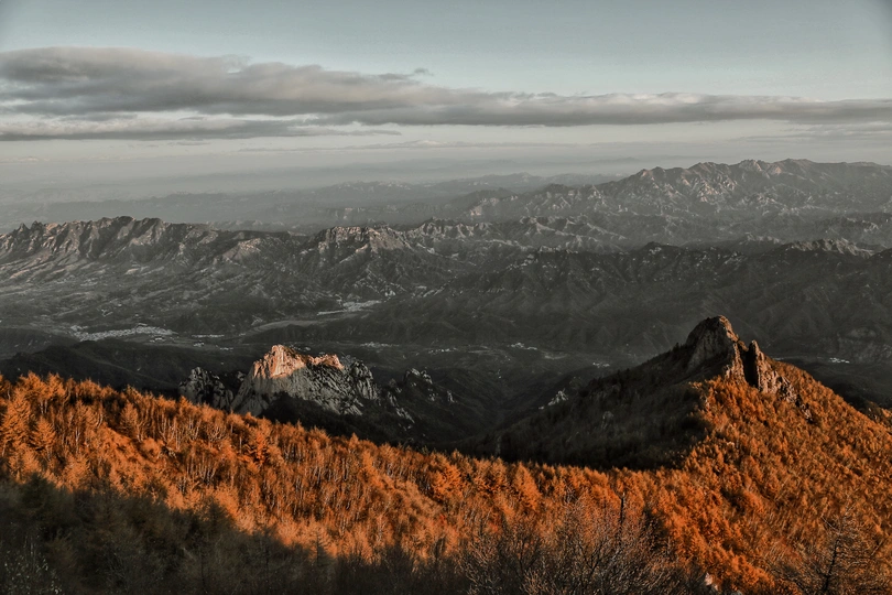 风景往往在没有过多期望的时候会带来惊喜,本以为雾灵山如同内蒙常见的山景一般,但没想到登顶的那一刻还是带了一些惊喜。