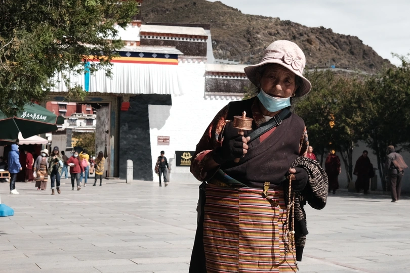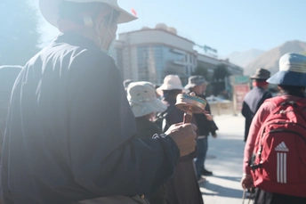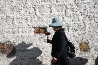 站在世界屋脊的西藏 擦肩而过的行走的人们 因带着相同信仰而从不同方向来 握着手中的转经筒 缓缓前行