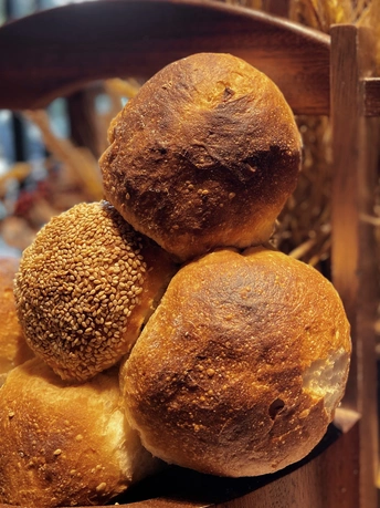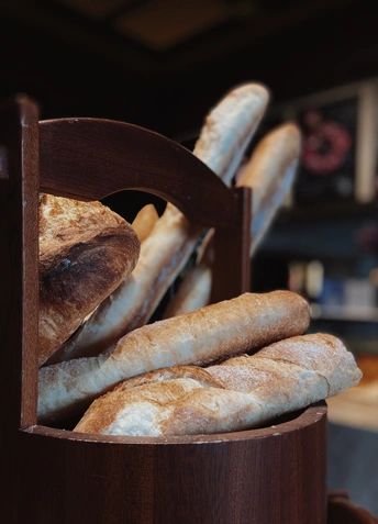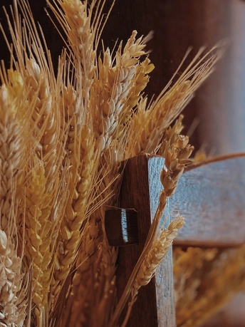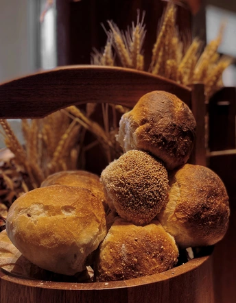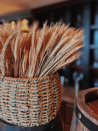 餐厅的一角,晒干的麦穗、储存的种子、擦亮的酒杯、散发着麦香的法棍面包,一切都那么清爽