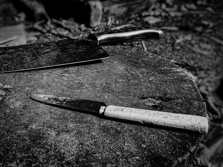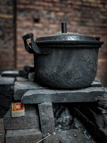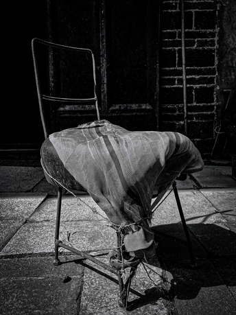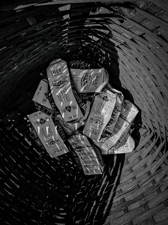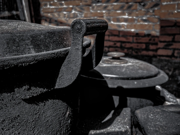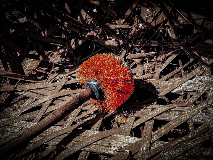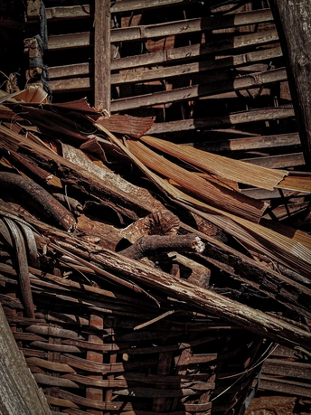 路过一个废弃的院子,门敞开,院子散落和堆砌着各式各样的物件,石头、砖堆砌的灶台,烧黑了的煮锅,一旁的菜板、刀子混着泥沙还未清洗,竹筐里的柴火、牛奶盒......或许这里成了某位拾荒老人的暂时居所,这里是他现在的故事……