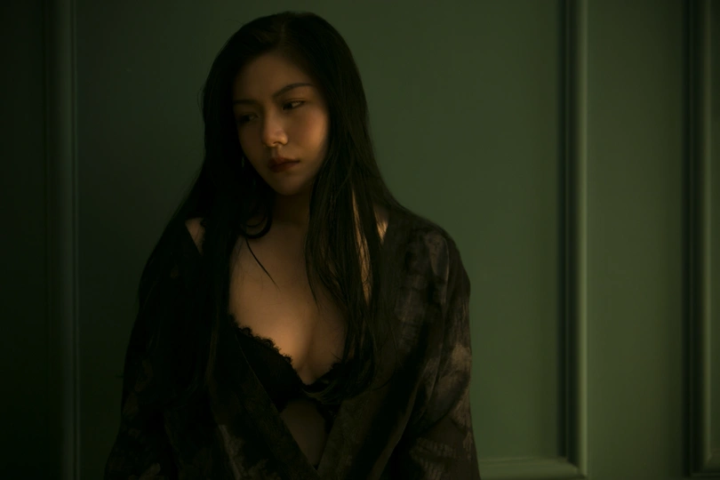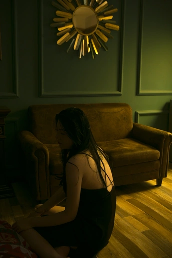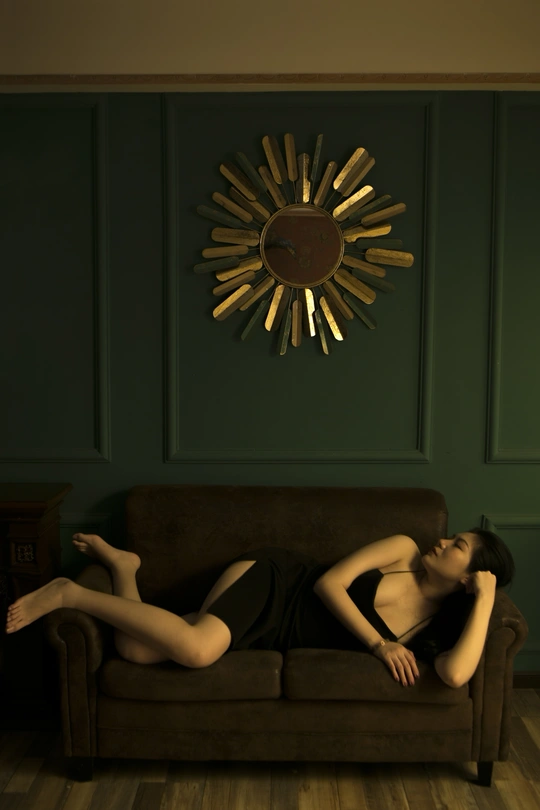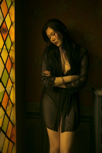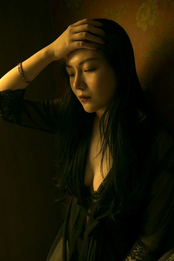 阿婧专程从杭州飞过来想拍一组丧一点的照片,怎奈我工作繁忙,没时间做详细的策划,索性就在她住的民宿里完成了这组照片;她是专业模特,奔波于全国各地,嬉笑言欢,手到擒来,我试图让她安静下来,忘记自己平时的套路,让情绪自然的流露,果然,她安静的时候一样美好。 技法分享:全程单闪灯包黄色色纸,打天花板形成柔和光线,并透过一扇贴有彩色玻璃贴纸的窗户打进房间,模仿夕阳的光线,相机色温2500k,让黄色的光线和绿色墙壁形成颜色撞击,偏暗的基调用以渲染人物低落的情绪,后期色彩平衡暗调加了一些青和绿,使暗调变冷,进一步渲染情绪,镜头焦距固定在35mm拍摄,个别张用50mm拍摄,保持跟人物的疏离感,也暗示人物轻易不让人窥视自己内心的心情。