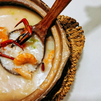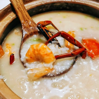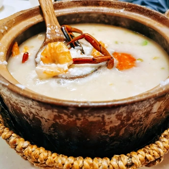 来尝尝潮汕砂锅粥,选了干贝虾蟹粥,慢火熬制配料丰富,整体口味还不错!
