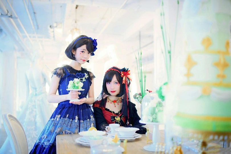 去一家下午茶的咖啡厅拍的,这家同时也是婚纱店,里面我就很多样式的婚纱,所以你看到的背景有衣服的都是婚纱。约了两个正好是闺蜜的妹子们去拍的。最后那张我有坐在正中间那个椅子上。