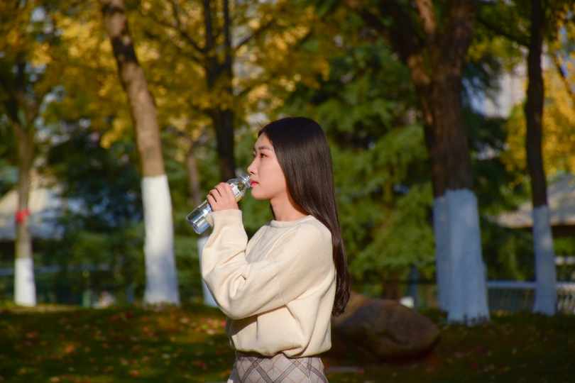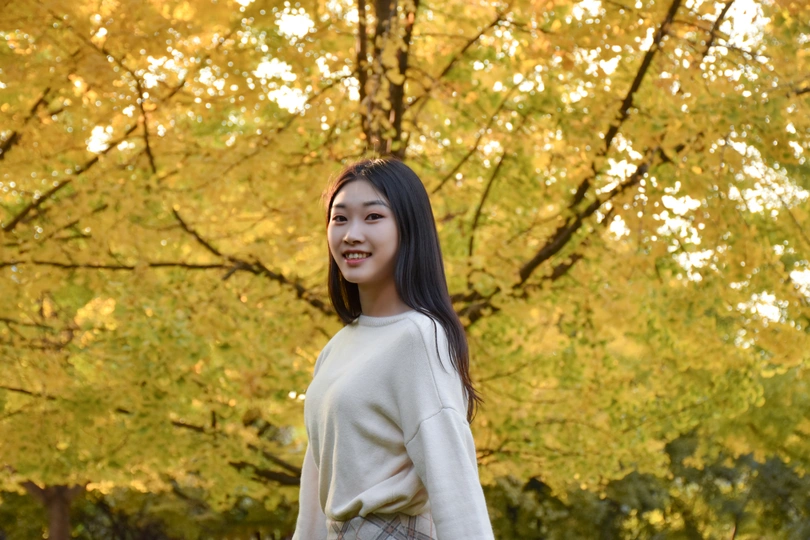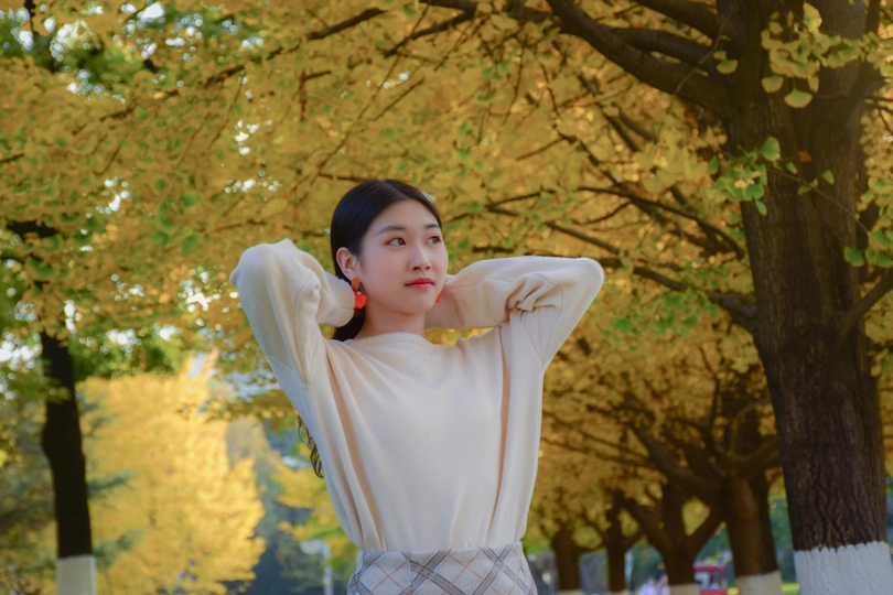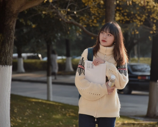分享日常,今天天气好,用脚架拍了一下自己和路人,秋天的校园,真美