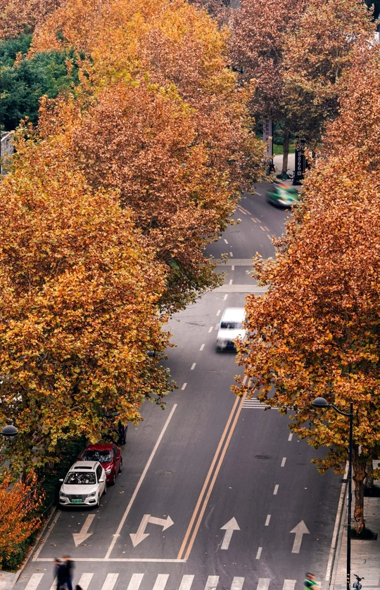 从窗口看去,路旁的梧桐树都已秋意甚浓。今年虽已立冬,但天气暖和,又是一个暖冬吧!
