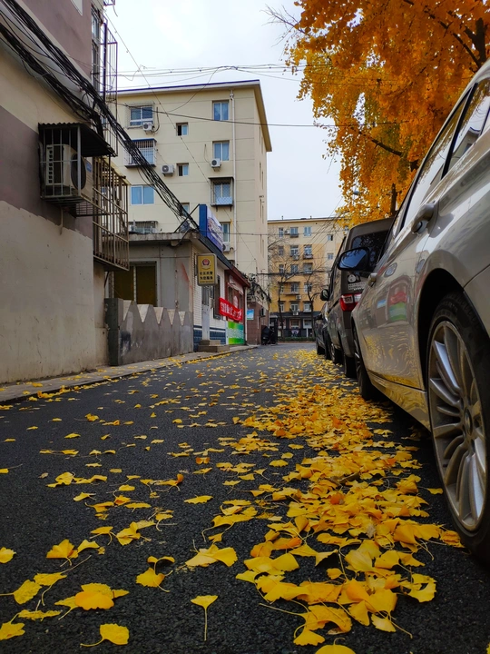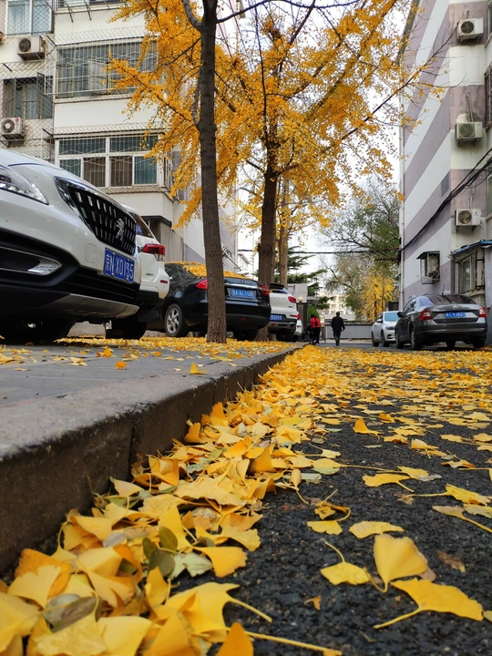 银杏飞舞着落向大地,迎接即将到来的雪,化作营养,等着来年开花结果。