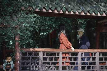 童年,青年,老年,在这一刻,廊桥仿是时光列车让他们重叠在一起。 此片为偶然抓拍下的。本是去罨画池采风,正好见一女孩在这廊桥上准备拍照,觉的光影不错,又见一老人走来,忽忙按下快门,回家电脑上才发现还有一小孩也在片中,实是难得。