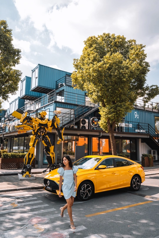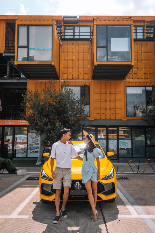上海可以拍照打卡的地方也太多啦!!!羡慕在上海生活的集美们。我们上一次去上海,就找到一个宛如在韩国街头的拍照打卡地,开着车就出发~ 位置:上海宝山区智慧湾科创园 这里是一个彩色集装箱的聚集地,各种各样的颜色,里面停车场的地方是各种颜色的集装箱,还有很多小店,而且站在2楼的走廊还可以拍到集装箱和地铁同框的图片,很有感觉。 这里还有一家开在集装箱里的星爸爸,在楼下仰拍很独特~ 很推荐大家穿独特颜色的衣服去,我们开的名爵全新MG5就和里面的yellow 不谋而合,溜背式设计时尚潮流,棱角分明更硬核,燃动科技美学散发极致的运动化表达,让人耳目一新,更适合年轻人的选择,无论是上下班的路上还是树林间的小道,总能一眼就抓人眼球,于是就玩了一个独特的摄影游戏,拍照这个园区每一个黄 色角落~ 周末很适合大家过来拍照。寻找属于你独特的颜色~