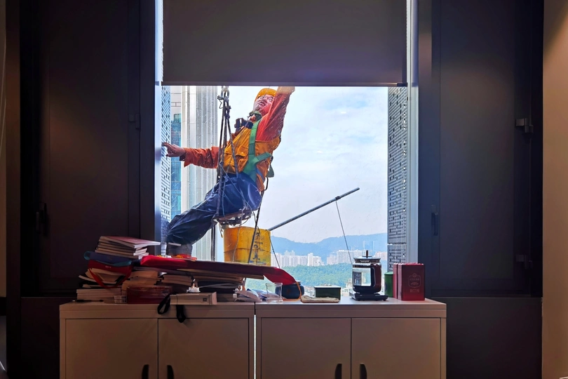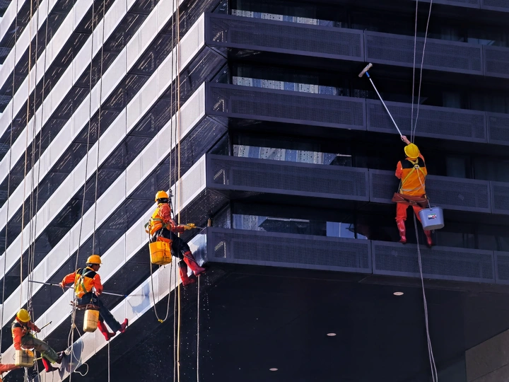 每个城市都有这样一群人,他们的工作场景在高空,在最危险的地方之一,为我们的城市建筑清洁美容,保持城市美丽容颜。