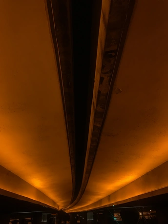 路过立交桥下,发现两边的灯光像是幕布一般垂下