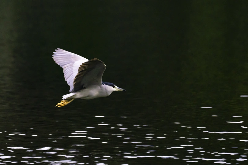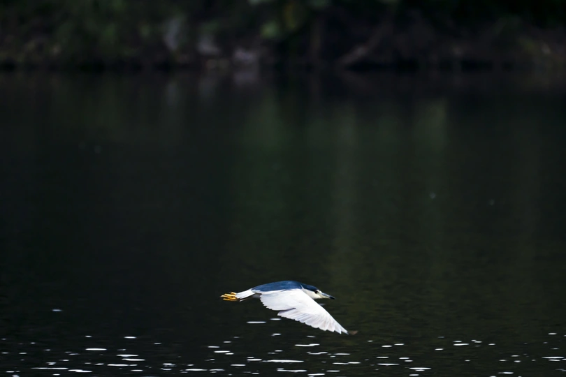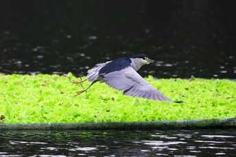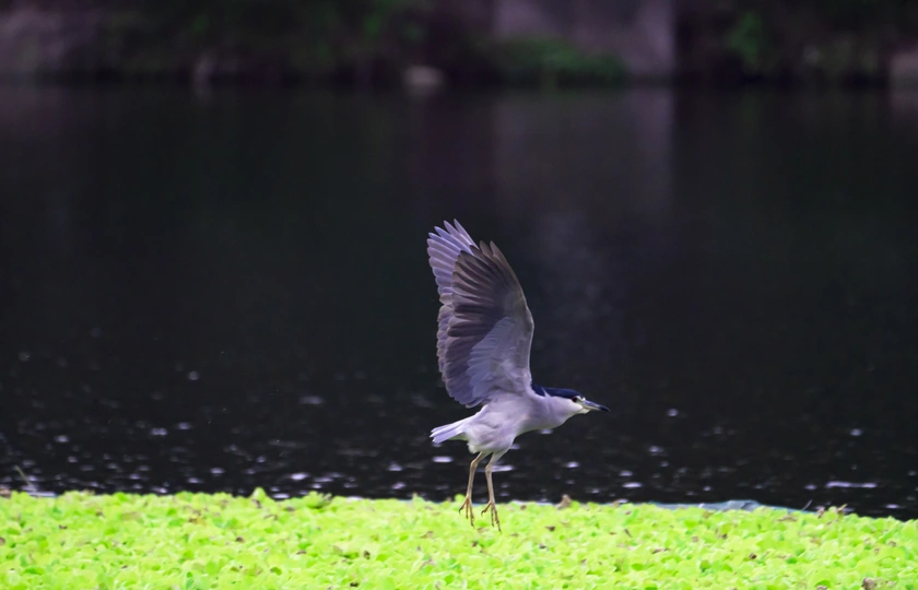 一大早去重庆彩云湖湿地公园居然拍到了夜鹭,可他整个上午就站在湖中浮萍上象是只雕塑,等了他一小时还多,刚一放弃他就飞走了,心里也后悔了很久老想着如果多等一会儿该拍到他腾空展翅的身影了。飞也飞了,吸取教训下次重来吧。 下午机位转到公园另一边,忽然间又发现了他,从镜头里放大了望过去敢断定就是他,他没飞远停在了公园湖湾另一角的浮萍上,任然象只雕塑一动不动。于是与他的耐力较量就此展开,看谁先放弃。没想到这一等大概就是几个小时,为了拍到他起飞的身影,手一直不敢离开快门,眼睛一直盯着取景器。到下午大概5点多,他终于飞起来了,赶快按下快门拍下了上面他展翅的瞬间。 有的朋友把拍鸟比做“打鸟”,但“打鸟”是对动作的比喻描述更多一些,当然也很生动。如果比喻为狩猎或者猎鸟更多的强调过程我觉得更有趣一些。