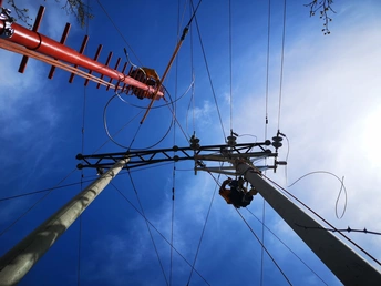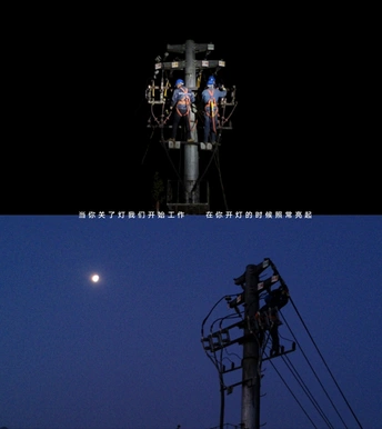 图一 “零点工程” 所谓零点工程就是为了保障居民正常用电选择在零点的时候停电检修 一般情况下在早上天亮之前工作结束恢复供电 图二利用绝缘蜈蚣梯进行“不停电作业” 不停电的情况下对线路进行连接搭火
