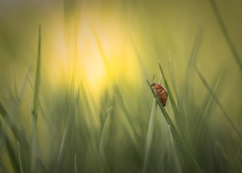 江边的步道上,一只小虫正在草尖上享受秋天的阳光,随着不远处园林工人割草机的推进,它们即将无处藏身。