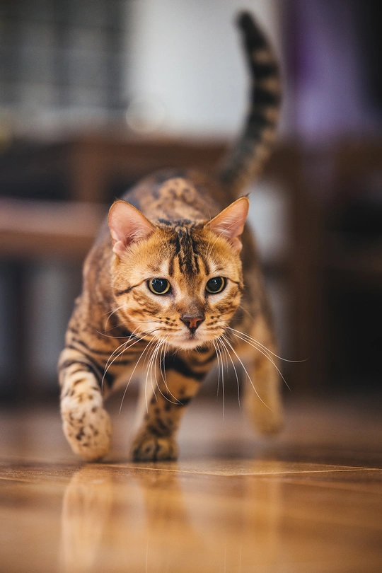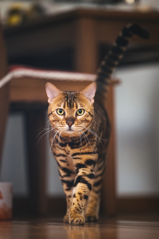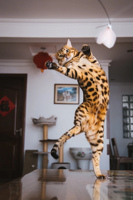 小崽儿是一只孟加拉豹猫,和妞子是室友。 如果说妞子是五短身材,小崽儿的面条身材和她形成了鲜明的对比。