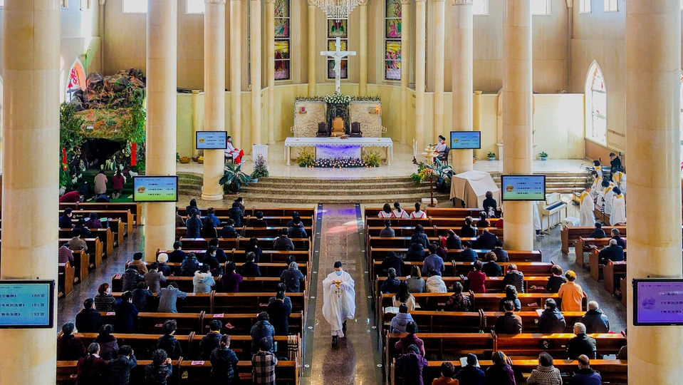 有些年老行动不便的教友,神父就亲自下来把圣体送给这些教友。