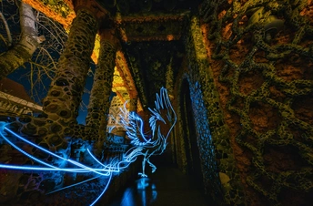 在中国瓷房子博物馆里进行光绘创作。奇幻的场景,开启了我新的系列光绘创作【山海经】 瓷房子里的每一片瓷,都有着自己的生命,都有着自己的故事,都是经过先人的精心抚触,伴着高温烈火才得以在这里矍铄,它们每一片都代表着内敛、敦厚与岁月的积淀,当它们集结在一起,它们就是闪闪发光的奇迹。光绘作品却不一样,它们是调皮的流星,它们跳跃在空中,它们会飞到蓝天里,它们闪耀登场,来去自由——它们与古瓷都是我们视野里的奇观,它们从不同的时空里穿越而来,只是为了,在这里与你相遇。