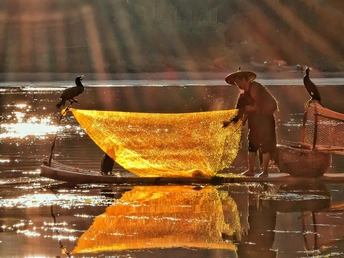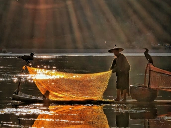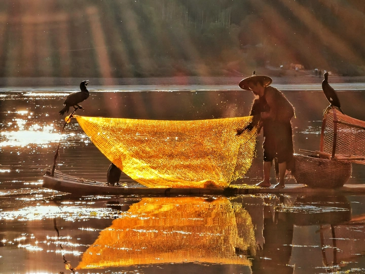 过去的一张网,寄托着一位渔民一世的生计; 现在的一张网,成全着渔翁全家未来的希冀。
