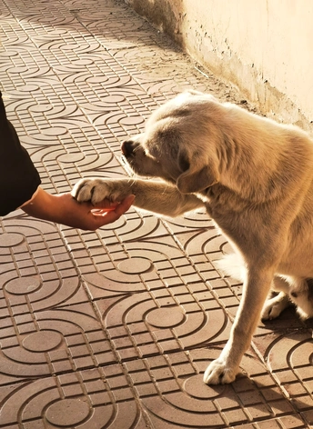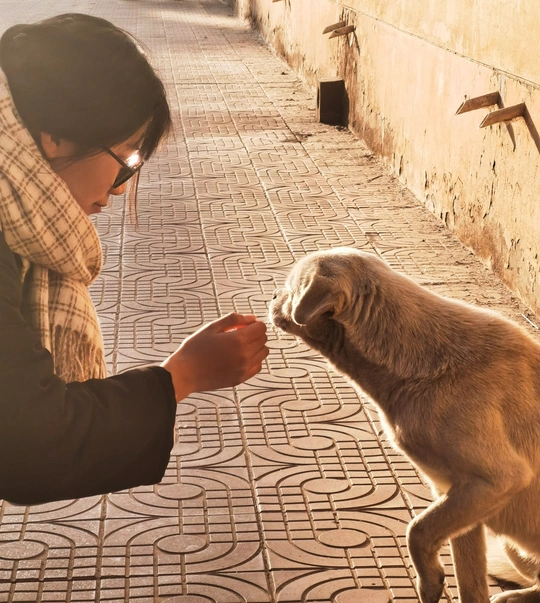 宿舍楼下 邂逅阳光 和主动握手的小狗