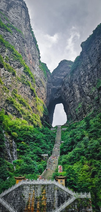 天门山上天门洞,天门洞横天门坎。 人间天上由坎隔,若往仙界跨坎过。 一生无忧幸福多,犹如神仙乐呵呵。