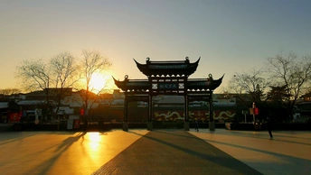 2021.1.1。新年元旦的第一缕阳光照耀(南京夫子庙)“天下文枢”牌坊,温暖洒在“文庙”广场。