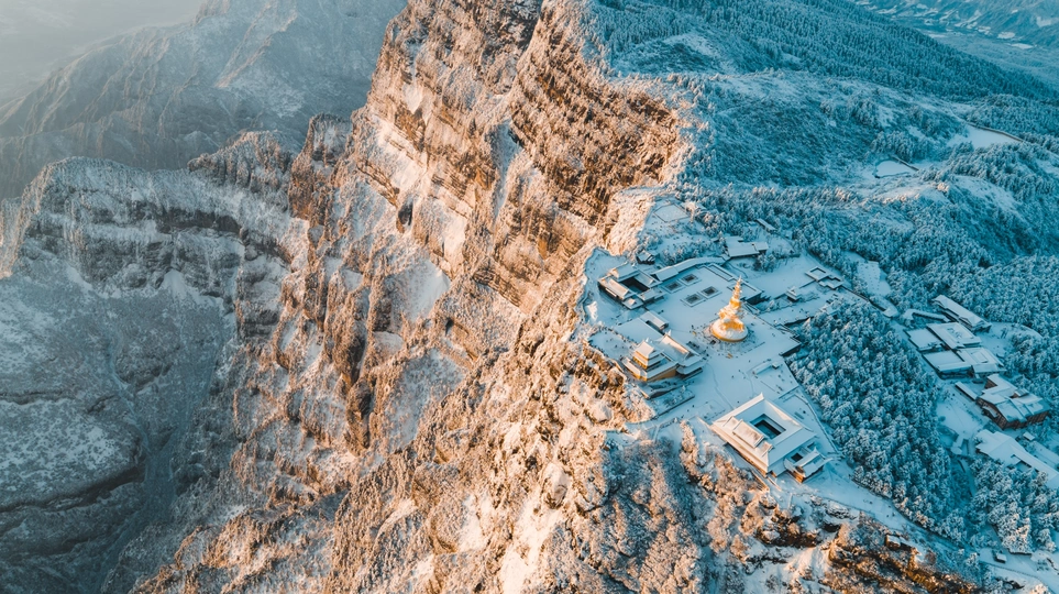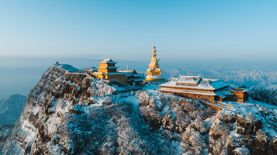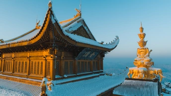 峨眉山的雪已经积的很厚了,雪花将峨眉山金顶装扮成白色的童话世界,轻轻松松出大片。 去峨眉山一定不能错过的那就是日出和云海,日出的到来,天际线开始慢慢变红,随之云海的尽头跳出一颗闪亮的太阳,云海和磅礴的雾气都被渲染成火红的颜色,如一出宏大的歌剧表演即将拉开序幕……冬天的峨眉山你一定不能错过