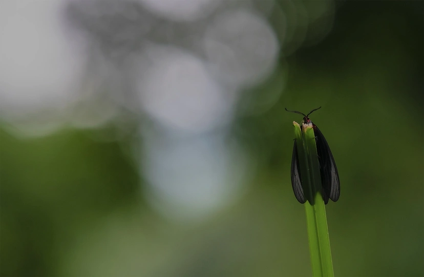 夏季重阳木锦蛾,在大雨过后独自停立在枝头上,仿佛在考虑着什么? 外面的世界很精彩么?外面的世界会无奈?