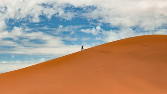 摄于腾格里沙漠,一位独自攀登在沙丘上的徒行者