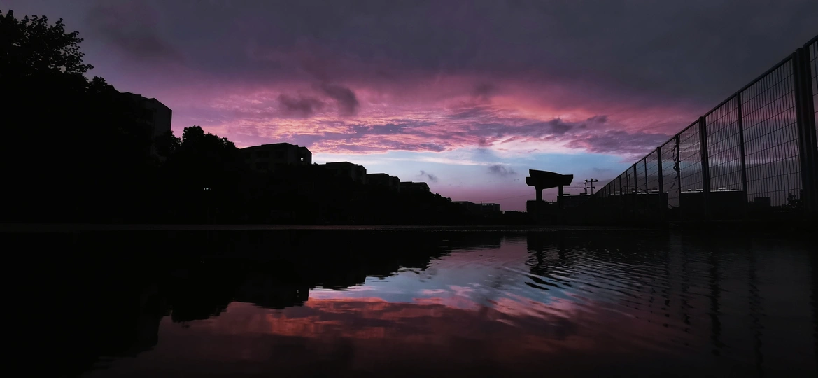 雨过之后,地面积水,以积水为镜面,再加上黄昏给予云彩的色彩,更为这幅画增加了意境