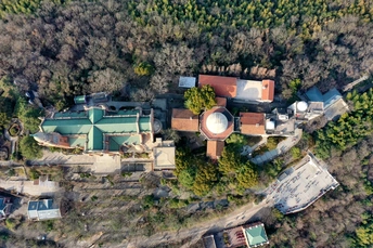 站在佘山之巅,往下俯瞰,天主教堂、天文馆与环境和谐统一。