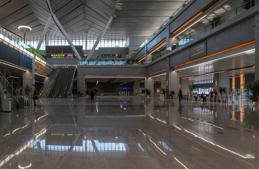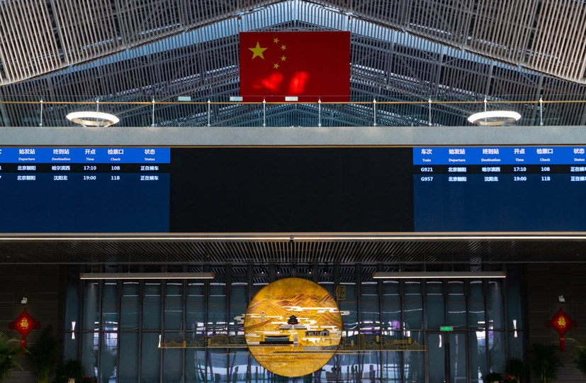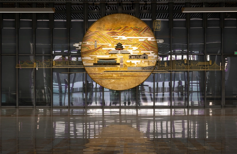 建设中的北京新火车站~朝阳站(已经通车) 京哈🚄是国家铁路战略四纵四横的重要组成部分 朝阳站从皇城建筑汲取灵感,将传统文化与现代艺术结合, 构建重檐庑殿式房檐和现代透光式屋顶