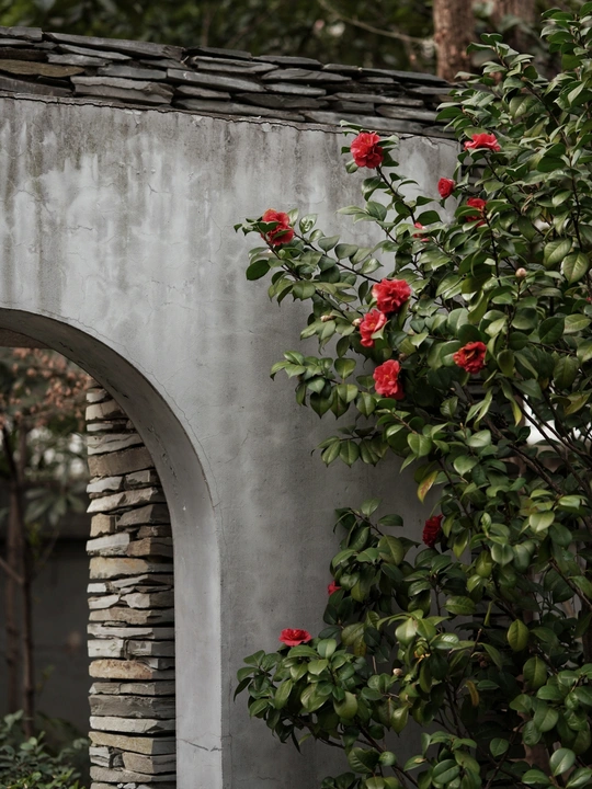 墙边的一丛茶花,嗅到春天的气味。