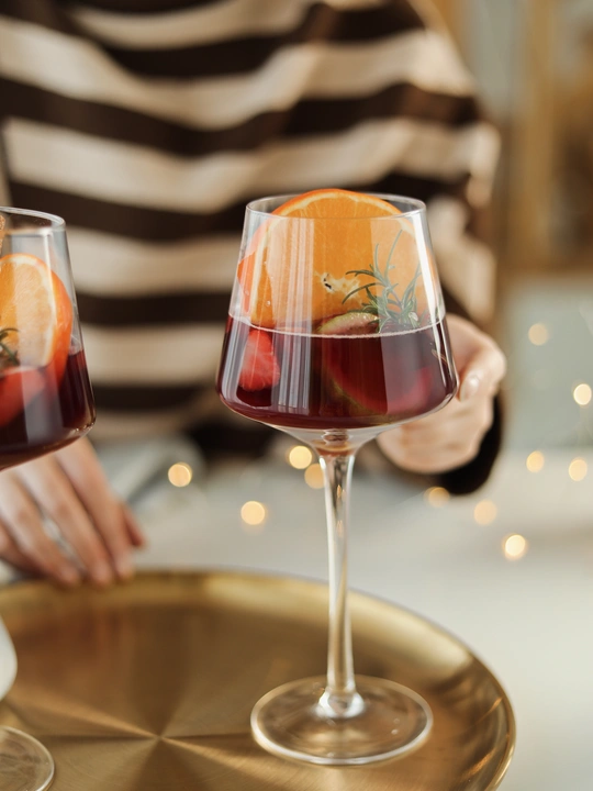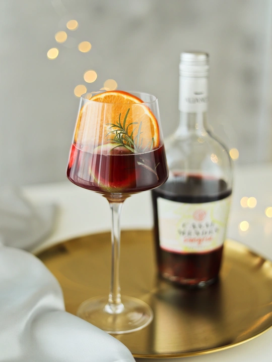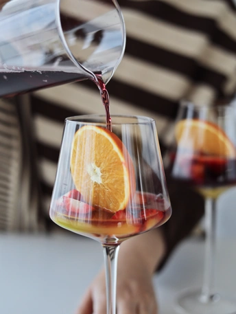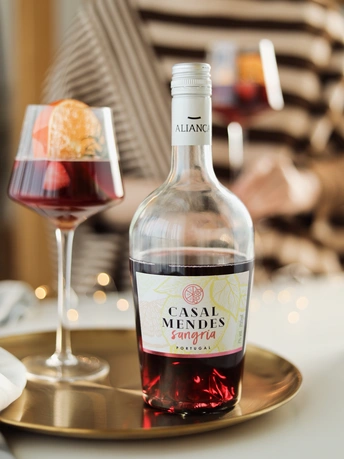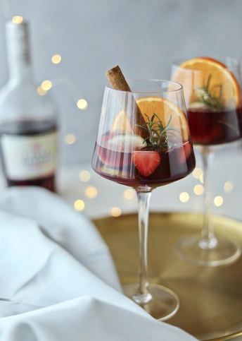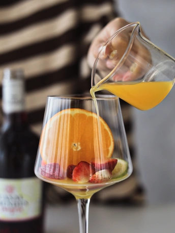 带花果香BACALHOA巴卡乐桑格里亚红酒。 - 水果香比较浓,开瓶后醒一会儿,柠檬、酸橙、柑橘,肉桂的香味扑面而来。 - 最爱瓶底类钻石切面的设计,搭配深红的酒色,尽显高贵冷艳。在杯中加几颗草莓,两片柠檬、一大片鲜橙。打底加半杯鲜橙汁,再加½不到的果酒, - 喜欢肉桂的可以加一根提味,入口真的柔和带着果香和肉桂香。