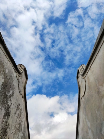 山墙在潮汕地区又称为“厝头角”,山墙按形状的不同可分为金木水火土各式,这种是其中的金式。高耸挺拔的“厝角头”是潮汕民居的显眼之处,巨大的墙头是潮人认家的标志之一。
