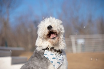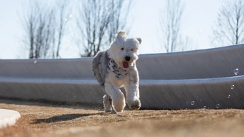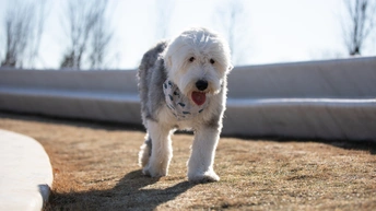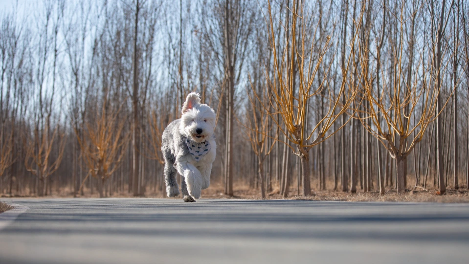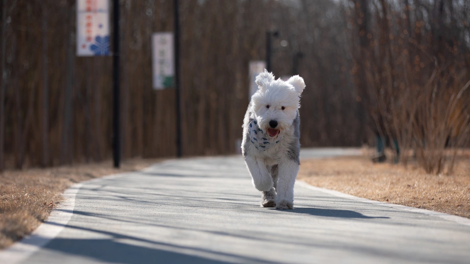 奔尼是一只十二岁的古牧,年纪虽然大了但还像个爱玩的孩子,健步如飞