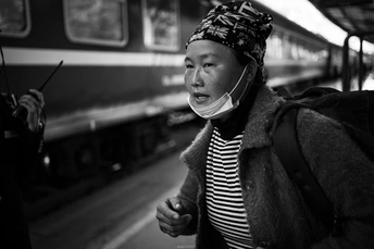 站台上准备上车的妇女