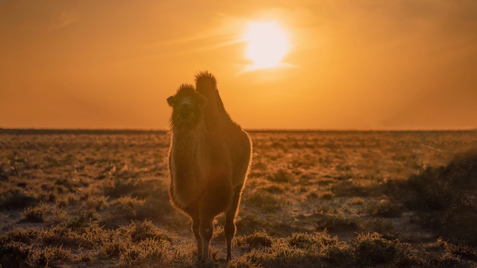 乌力吉牧场中的骆驼剪影@Richard.Qu @三三藏 @西门 @judy1210 @树懒a守望 @米拍社长 @米拍