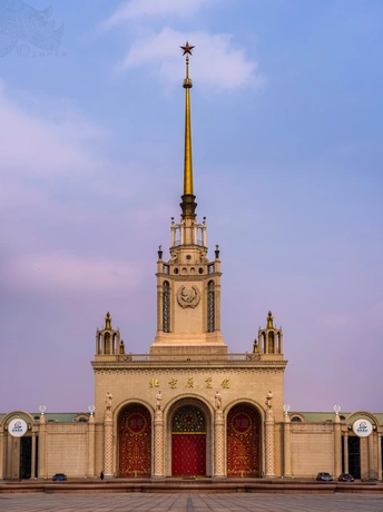 展览馆在云朵包围下氛围感十足,用手中的长焦镜头拍下,后期接片成像。