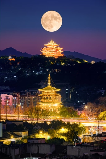 【杭州建筑】城隍阁 城隍阁一一耸立于杭州吳山之巅,高41.6米,炫煌富丽,主顶顶端为葫芦状宝瓶造型;四个副顶顶端设凤凰造型,整座楼阁仿佛一群展翅翱翔的凤凰,又如仙山琼阁倚天耸立,兼杭州江、山、湖、城之胜,建筑整体造型具有南宋的建筑风格,皇家气派,大度而不浮华,雄浑而不矫饰,昂扬向上,气魄雄伟,格调高雅。