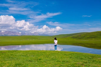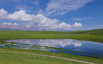 每当回想家乡的美景,想到家乡的山美、水美,那里的蓝天白云更美,那里有许许多多在城市所见不到的花草,虽然没有都市般繁华,但是皑皑的雪山还有一望无际大草原,彷佛构成了绿色的海洋,沁人心脾!