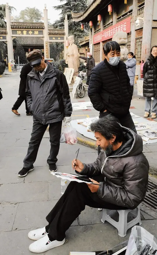 春节前,去书院门可以看到满街的写书法的人 甚至小孩也会在一旁拿笔临摹 整整齐齐的红灯笼,红对联,年味十足 在永宁门附近 有青一色的仿古建筑,青石铺砌的街道路面 碑林博物馆、宝庆寺塔、关中书院、 于右任旧居等名胜古迹 积淀着深厚的历史文化底蕴 最先是因为关中书院而出名的书院门 开始渐渐被人提起... 在这里,你可以嗅出西安的文化重量