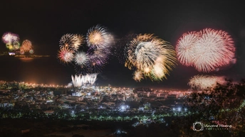 拍摄于2021年大年初一,远处方烟花的是台湾控制的小金门岛。