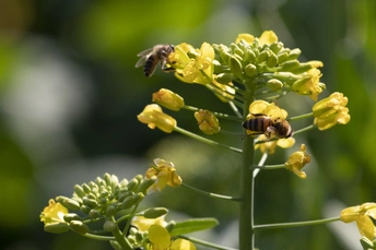 黄萼裳裳绿叶稠,千村欣卜榨新油。爱他生计资民用,不是闲花野草流。