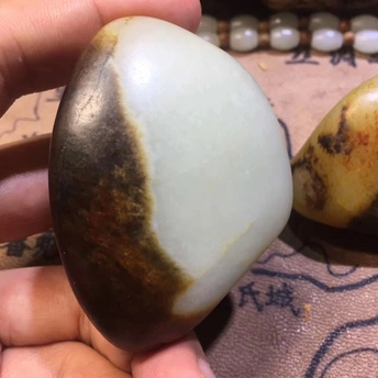 有朋友问和田玉中的老油皮是什么,今天给大家科普一下,一般皮色的划分非常多样,比较常见的颜色有黄、红、黑、等等,根据皮质有分为浆皮、石皮、沁皮、油皮等等,而老油皮就是皮质的一种,油皮料在形成过程中,由上亿年冲刷侵蚀,油皮一般常在玉质中上到中下之间形成,深浅不一,它可能是红皮也可能是黑皮,也可能是黄皮,又或者是脏皮。但就如字面的意思,它的油性极好。并且触摸表面,手感极佳,稍稍盘玩有种冒油的感觉!这就是老油皮!