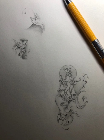 俗话说台上一分钟台下十年功,从以下设计画稿当中就可以想象到成品的模样,都说玉雕师最基本的就是画工,可是却不知道画工包含了玉雕师对玉料的理解能力,以及超越常人的想象力,换句话讲,有没有一张漂亮、传神的画稿很大程度上已经决定了作品的成功与否,画工虽是基本却已经是普通人无法逾越的鸿沟了,你觉得呢?