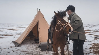 在内蒙古露营🏕️ 如果不抓住内蒙古的本土特色那那便失去了一些趣味🖼 🧭四子王旗,是距离内蒙古呼和浩特比较近的一个大草原 赶在21年最开始的一场雪中❄️我带着朋友家的小马驹去露营🐎🐴 有意思的是小马驹🐴一直没调教过,生疏的很😿 结果朋友就在帐篷前临时调起了小马驹🙄 🍃这样的体验真的是太棒了🍃 🍃夏季到来 我们要做一次在草原🖼上关于骑马露营的主题🏕️ 🍃期待大家加入🍃