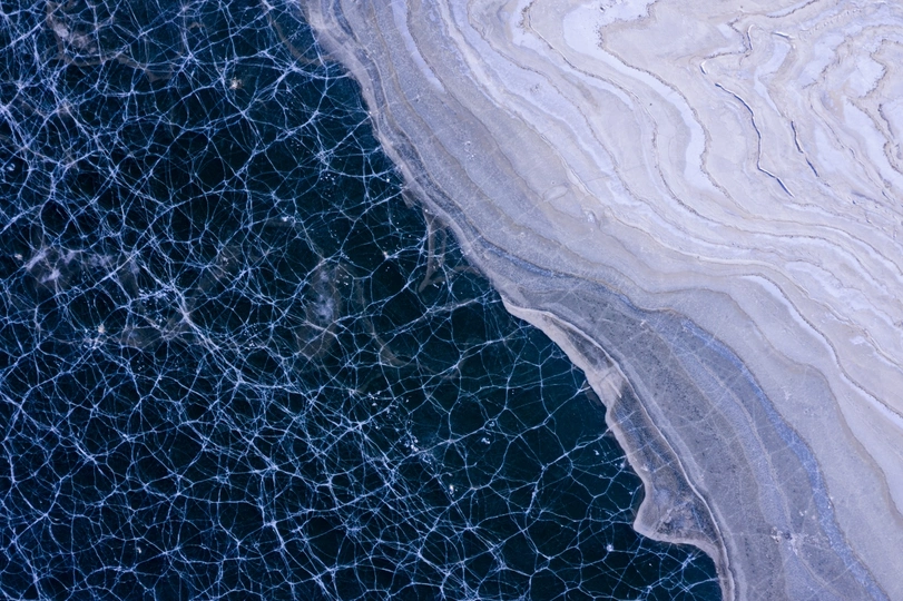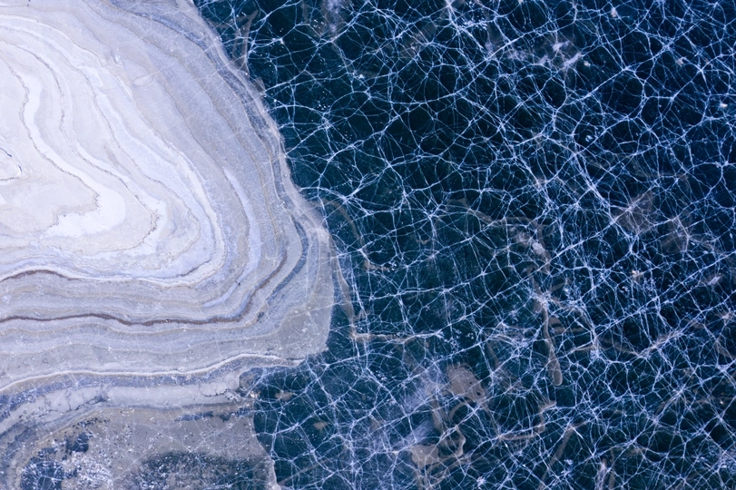 在白河堡水库用DJI Mavic pro 2 航拍冰面的裂纹