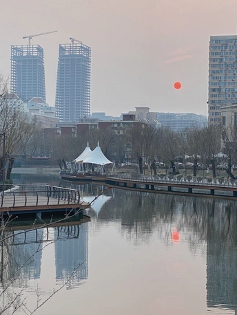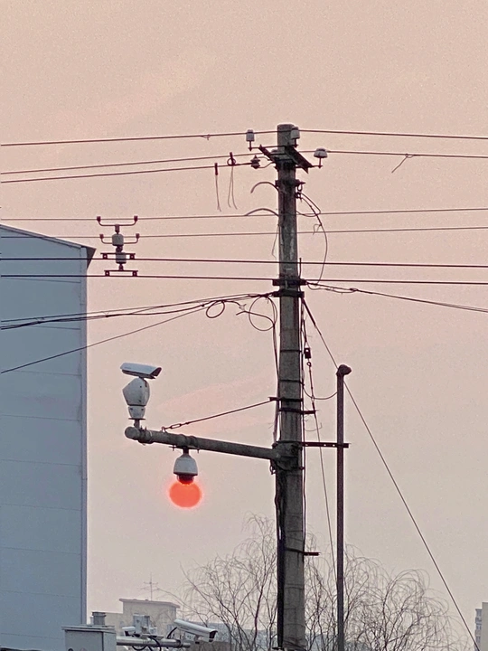 北京又有雾霾了,下班路上看见太阳变成了一个红色的球,挂在天边。有一种另类的美。iPhone 11 pro, snapseed后期