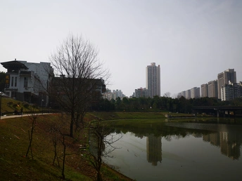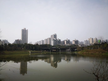 长寿桃花新城滨河公园,景色非常漂亮美丽,空气清新,鸟语花香,环境优美,白天和夜晚都有很多人到公园散步,看美景,景色美呆了