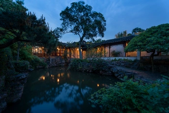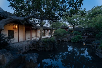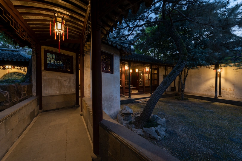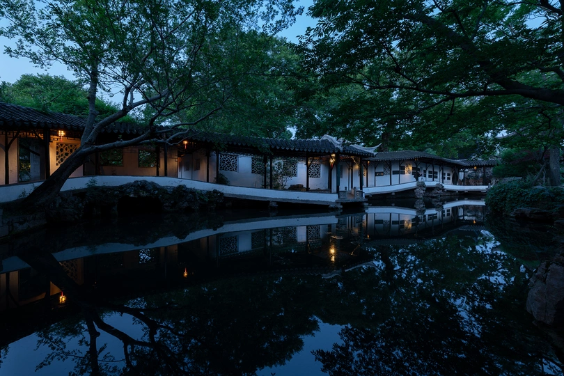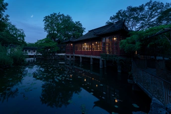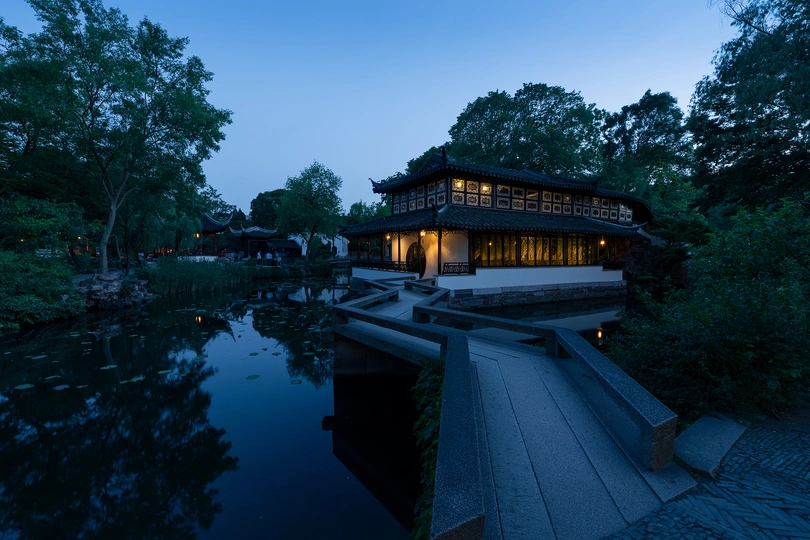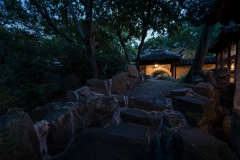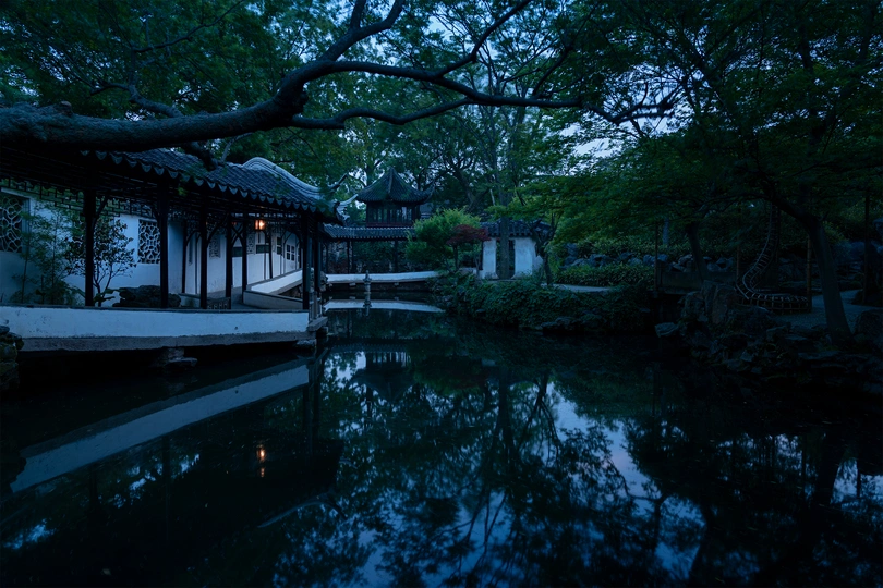 月光爬上夜色,没有星辰的微光,一步一景,如浸没在静谧蓝海里,素辉照人。