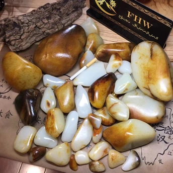 有朋友总是在纠结好料子贵,总觉得市场上很多玉料都很便宜,那么咱们就把市场上一些便宜的料子展示一下,都说和田玉水深,那只是鉴于不懂的情况下,有些东西其实还是挺直观的,就如下图这两批料子,真假贵贱一眼就明了吧,俗话说不怕货比货,就怕不识货,乌鸦和凤凰都是鸟类,放到一起差距还是很明显的吧,因此既然喜欢和田玉,就要多了解它的相关知识及市场,不要想着用几百元买几万的东西,商家都是逐利的,谁会赔钱卖你呀,当你想要捡漏的时候往往就已经踏进了陷阱,一分价格一分货还是有道理的哦,你明白了吗?